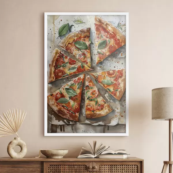 Poster Deliziosa pizza italiana, arte alimentare ad acquerello, margarita, pomodori Nr f39703