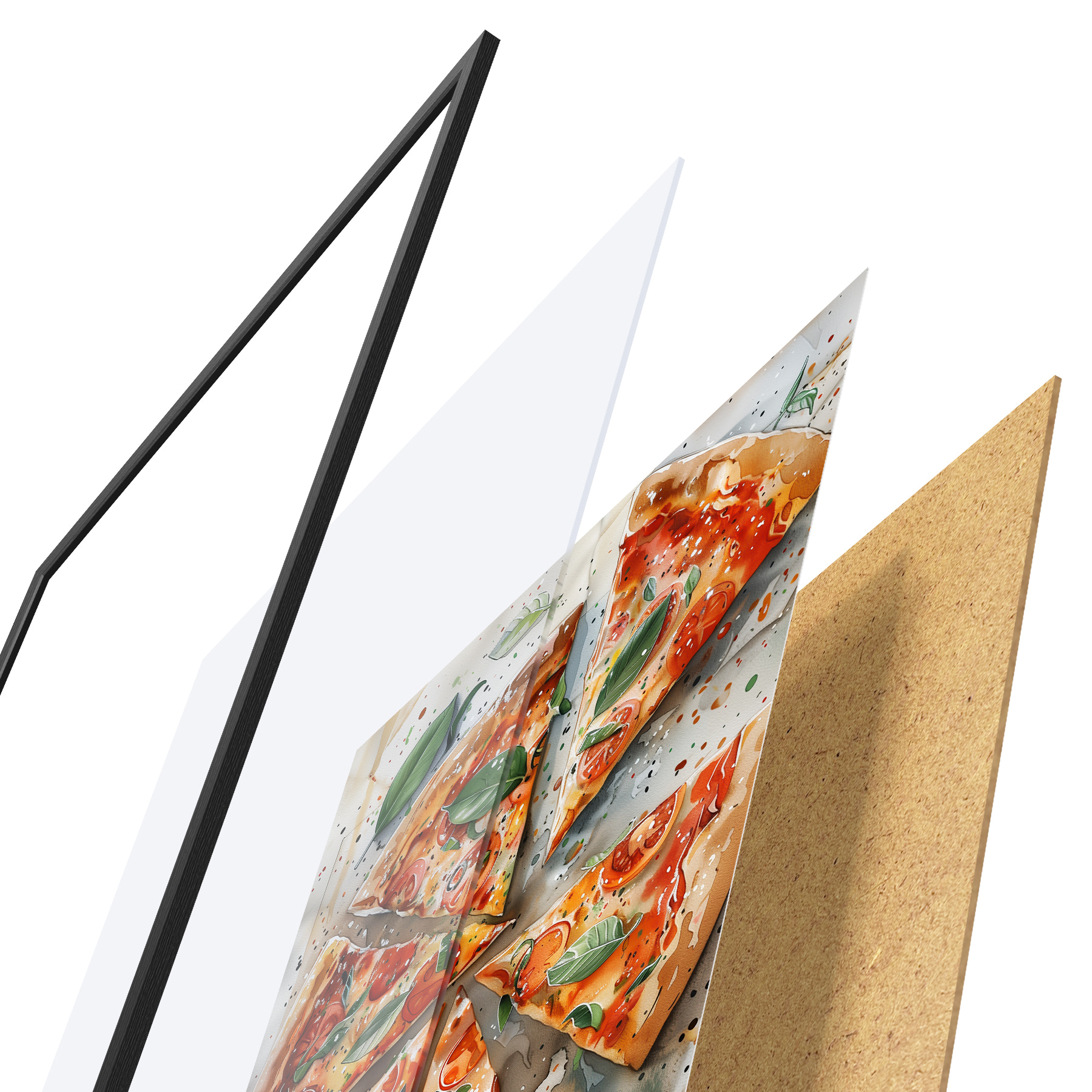 Il poster è composto da cornice, plexiglass, immagine stampata e supporto in truciolato. Il poster può essere immediatamente appeso alla parete grazie ai supporti sul retro.