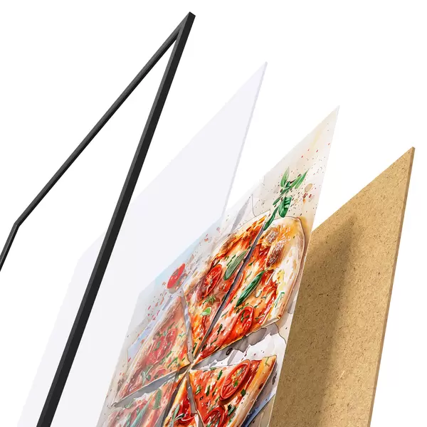 Il poster è composto da cornice, plexiglass, immagine stampata e supporto in truciolato. Il poster può essere immediatamente appeso alla parete grazie ai supporti sul retro.