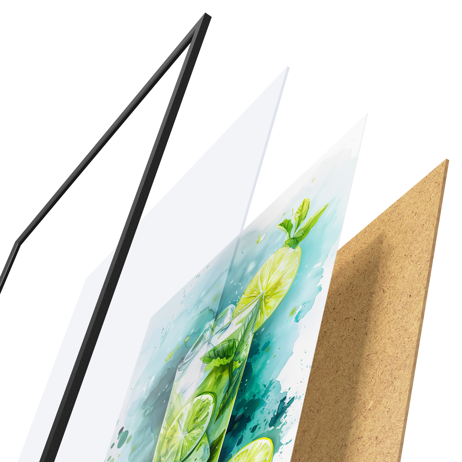 Poster Cocktail estivo acquerello, mojito, lime e menta, colori floreali e verdi Nr f39712