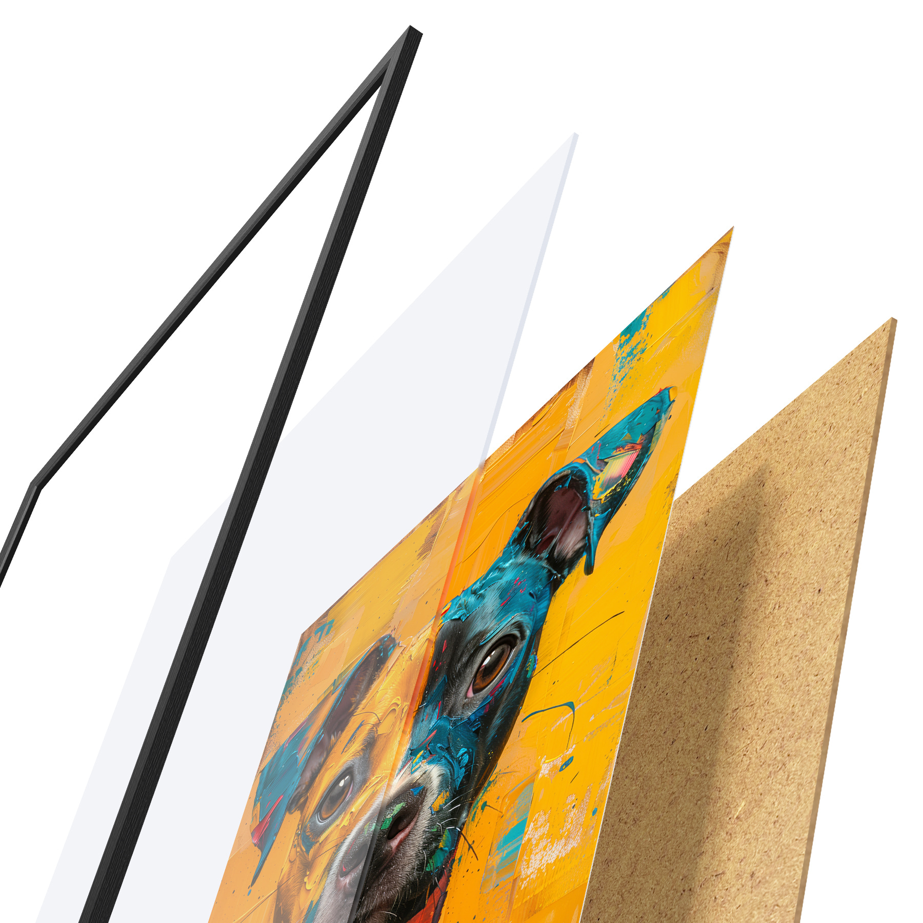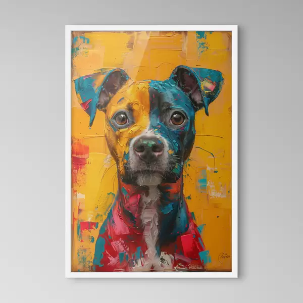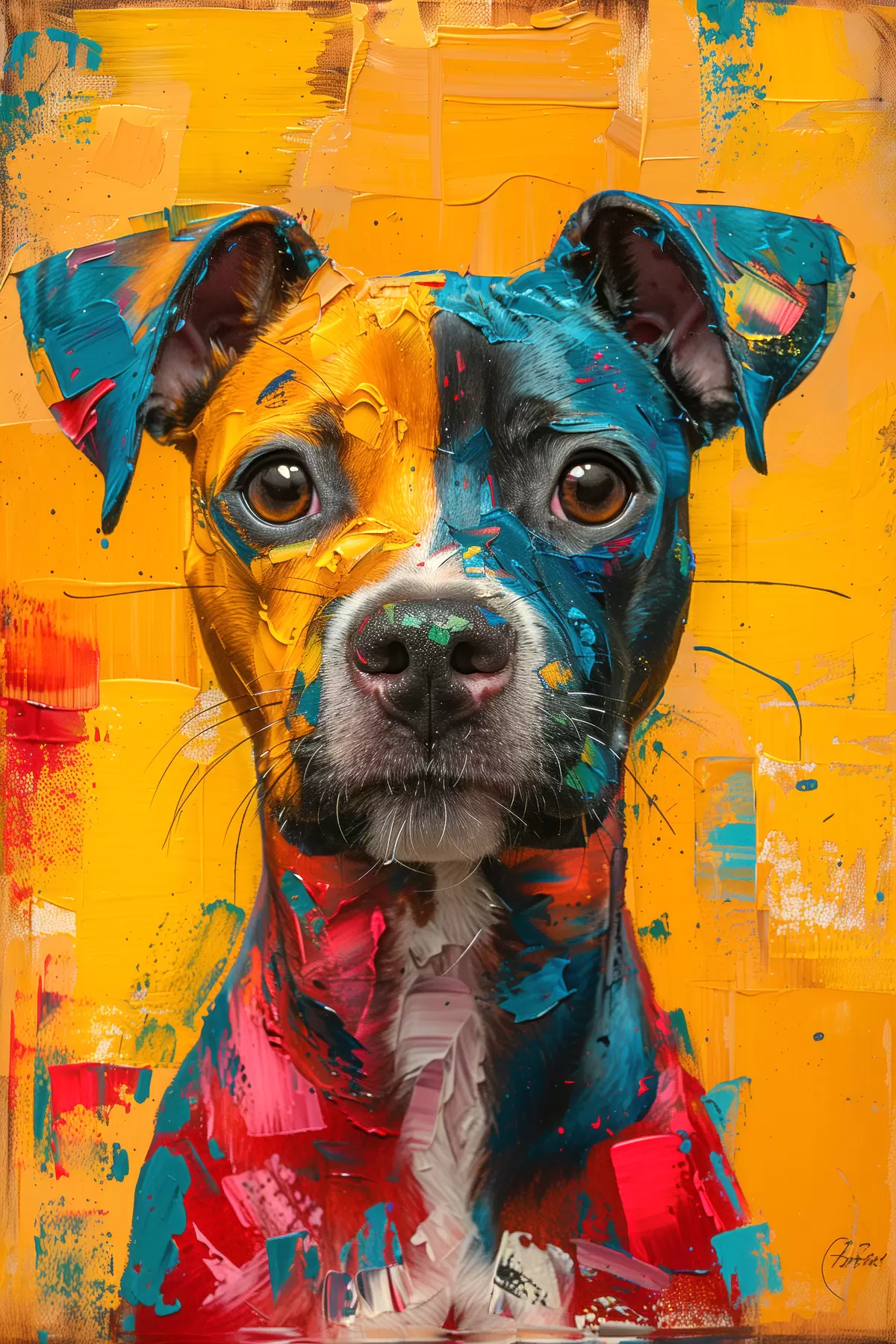 Poster Ritratto di un Pitbull con pennellate di olio giallo e blu Nr f39722
