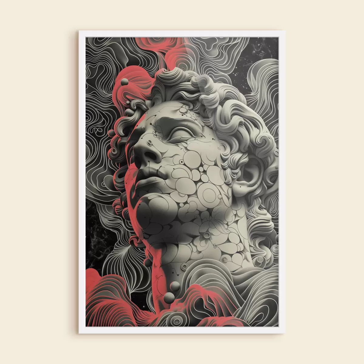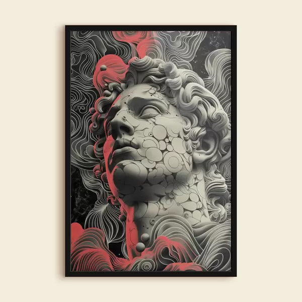 Poster Illustrazione lineare in bianco e nero della testa del dio greco Apollo in stile pop art Nr f39763