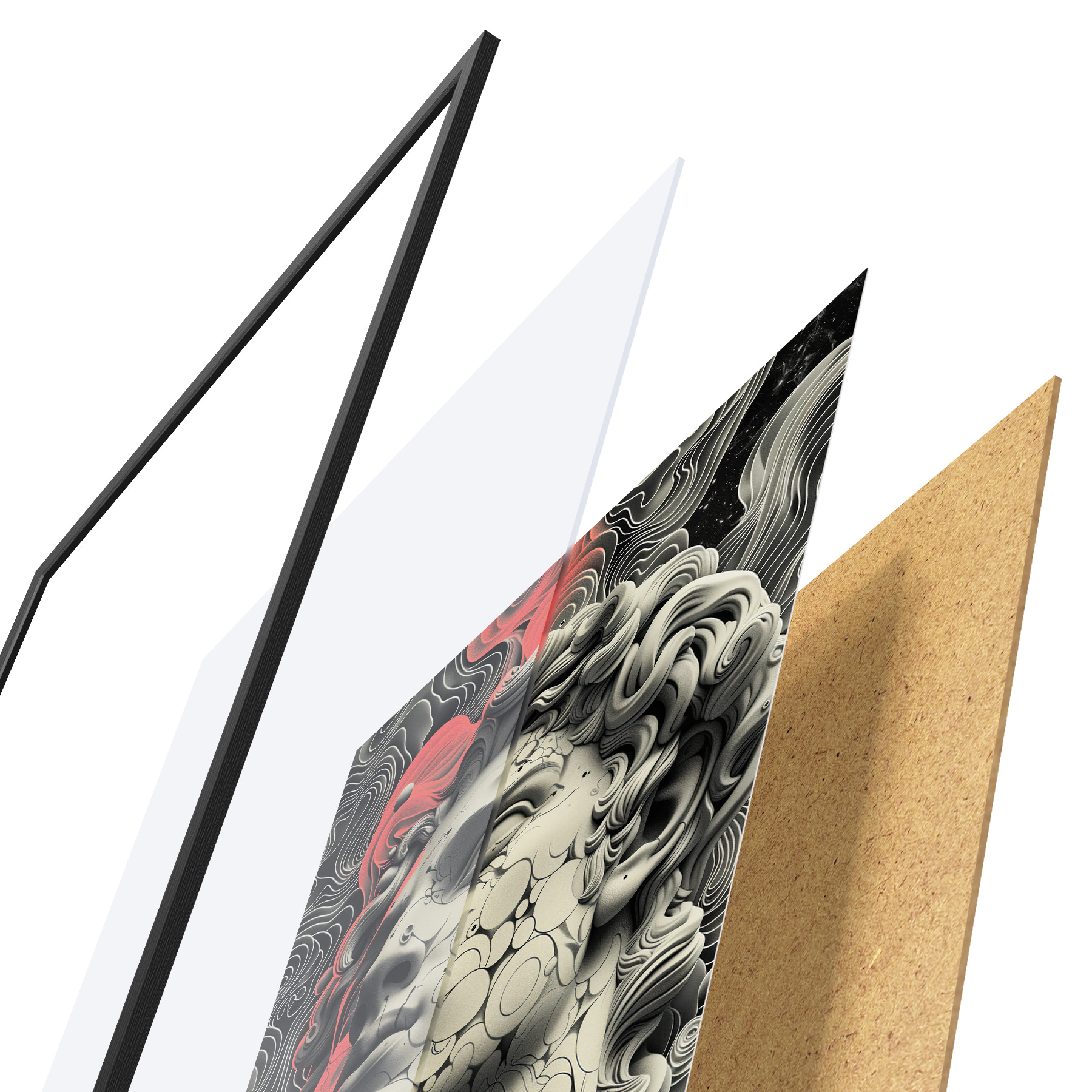 Il poster è composto da cornice, plexiglass, immagine stampata e supporto in truciolato. Il poster può essere immediatamente appeso alla parete grazie ai supporti sul retro.