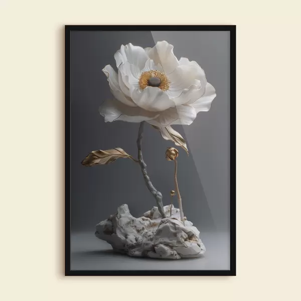 Poster Grazioso loto bianco che fiorisce dalla pietra Nr f39765