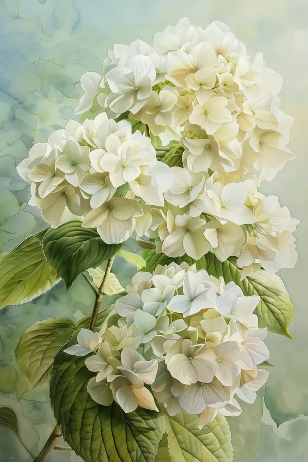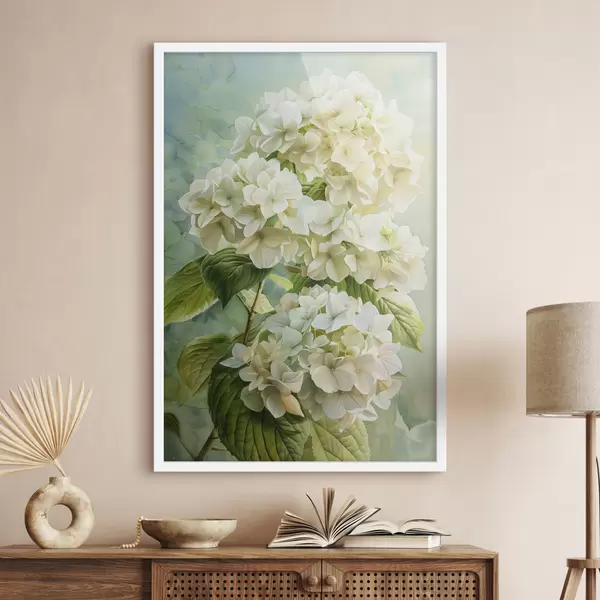 Poster Fiore di ortensia, floreale, colori naturali tenui, disegno ad acquerello Nr f39782