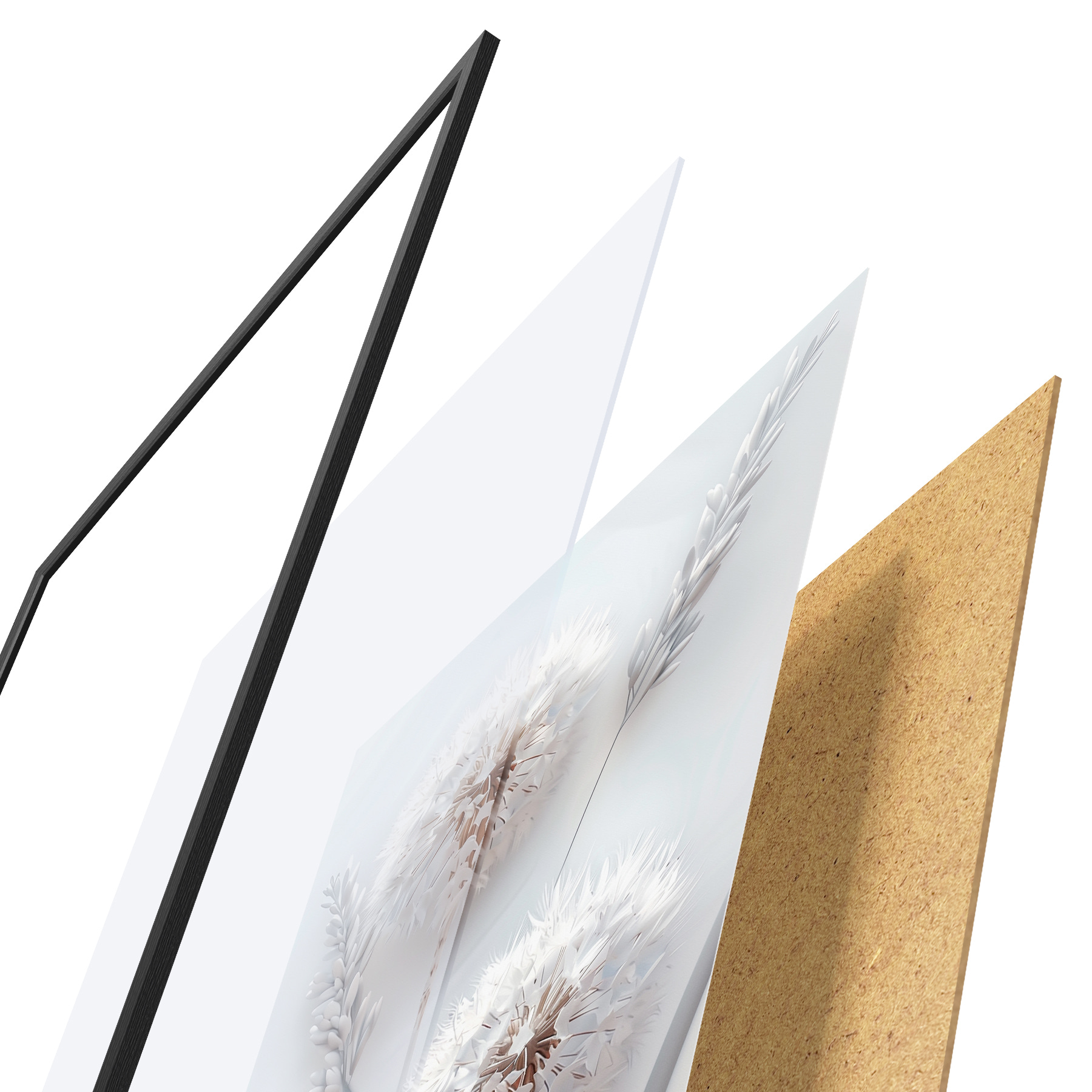 Il poster è composto da cornice, plexiglass, immagine stampata e supporto in truciolato. Il poster può essere immediatamente appeso alla parete grazie ai supporti sul retro.