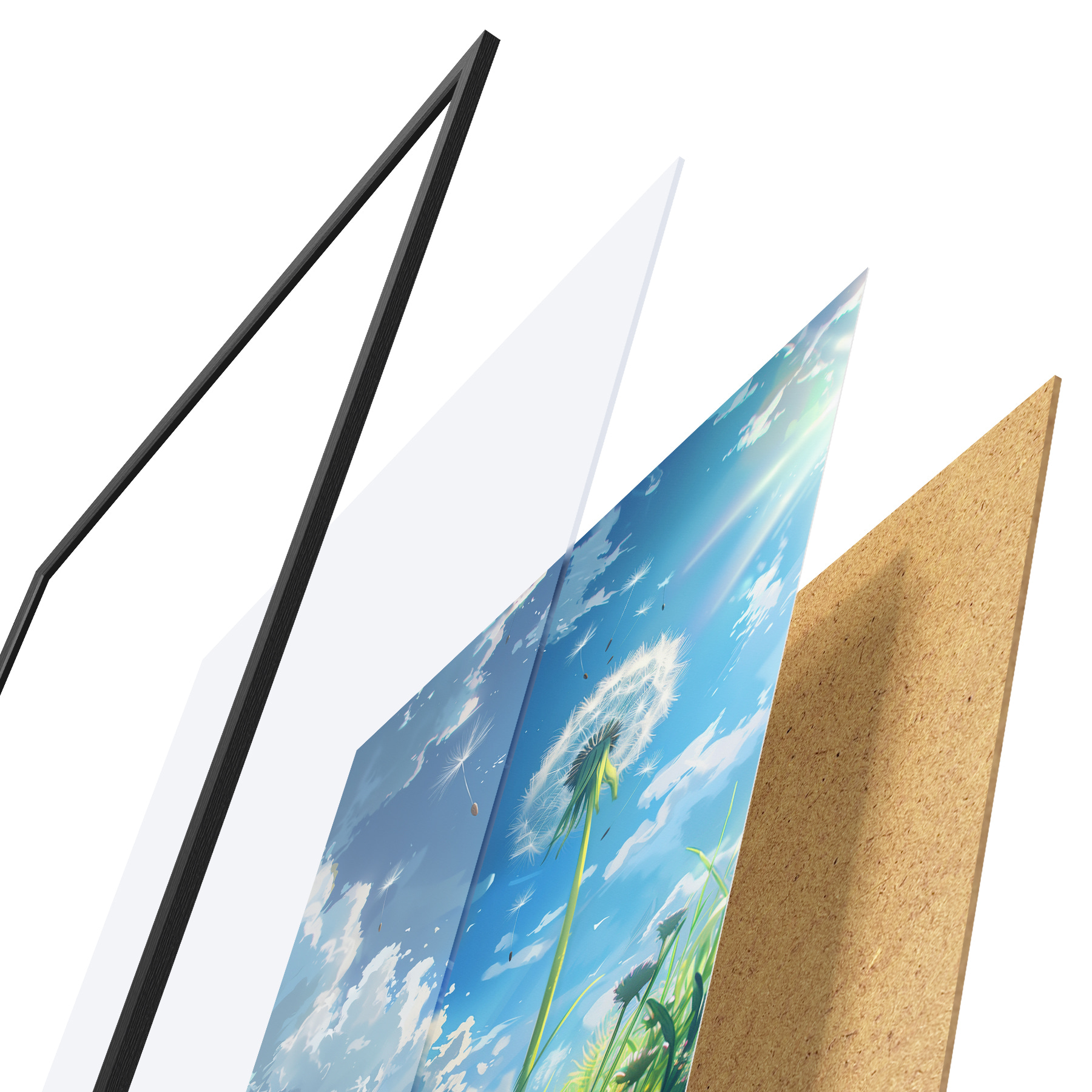 Il poster è composto da cornice, plexiglass, immagine stampata e supporto in truciolato. Il poster può essere immediatamente appeso alla parete grazie ai supporti sul retro.
