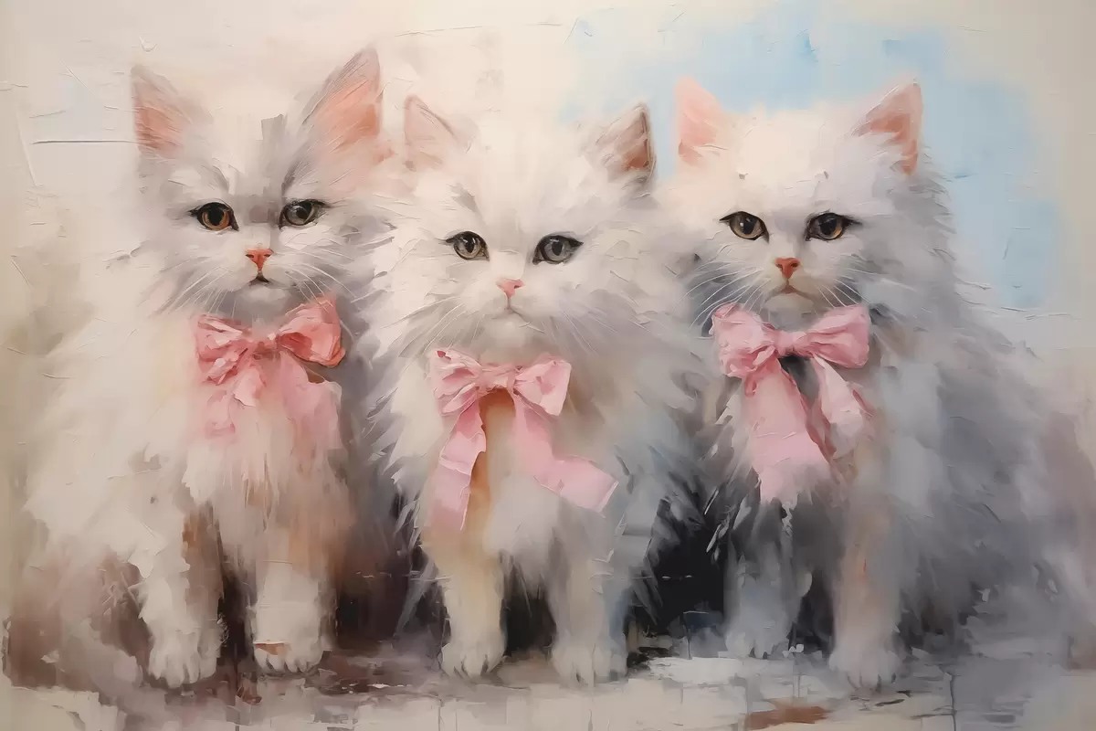 Poster Gatti bianchi con pittura ad olio fiocchi rosa f39826