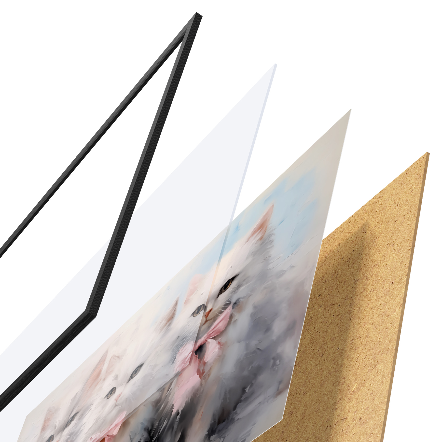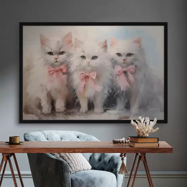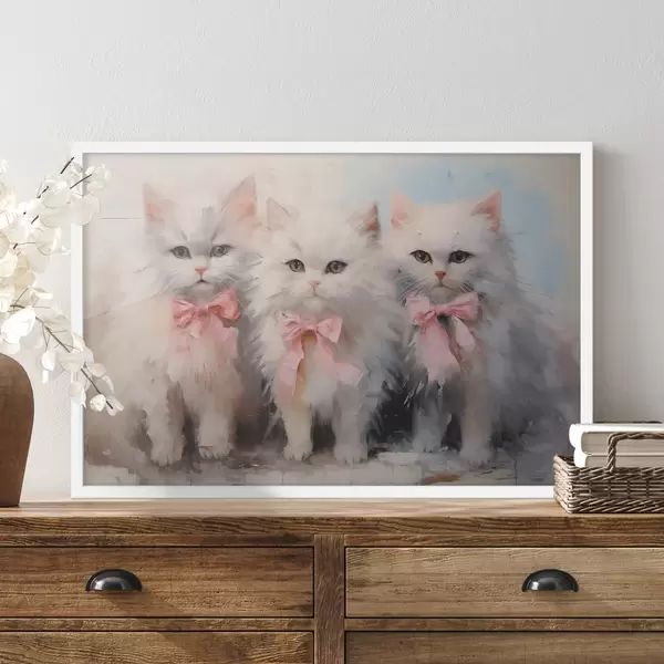Poster Gatti bianchi con pittura ad olio fiocchi rosa Nr f39826