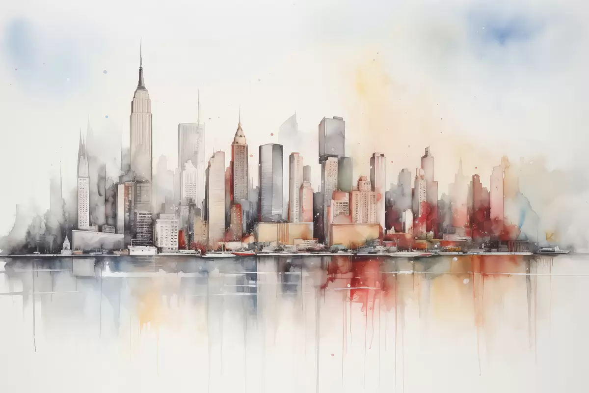 Poster Vista di New York City, sagome di edifici, acquerello Nr f39828