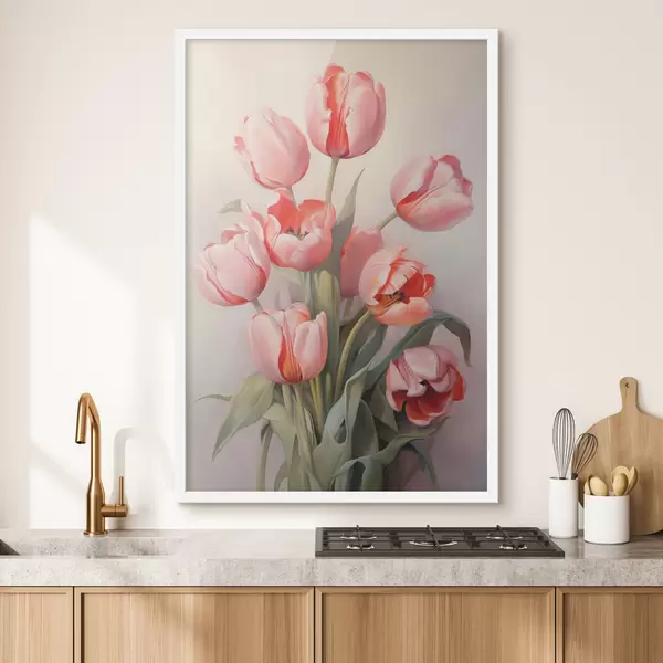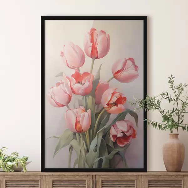 Poster Tulipani rossi rosa su pittura a olio leggera f39832