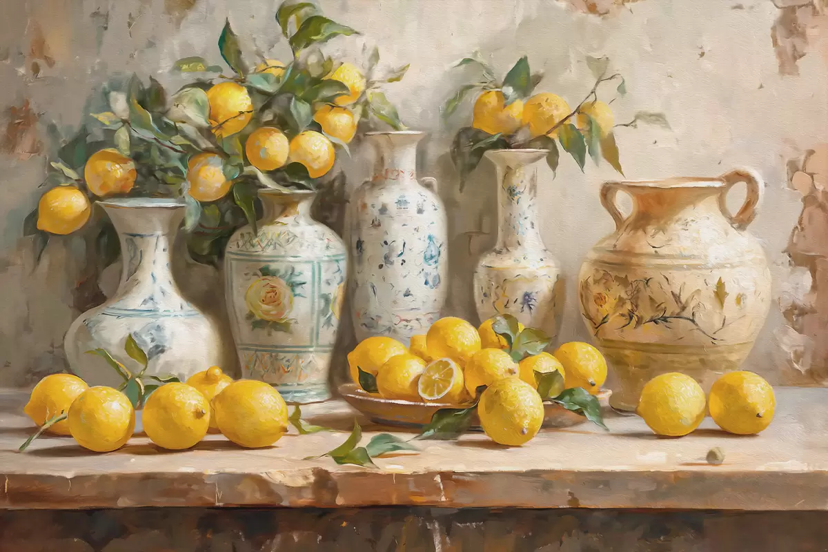 Poster Limoni e vasi vintage sul tavolo Nr f39833