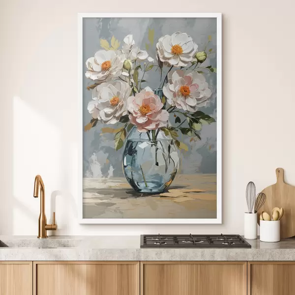 Poster Fiori bianchi in vaso trasparente Nr f39850