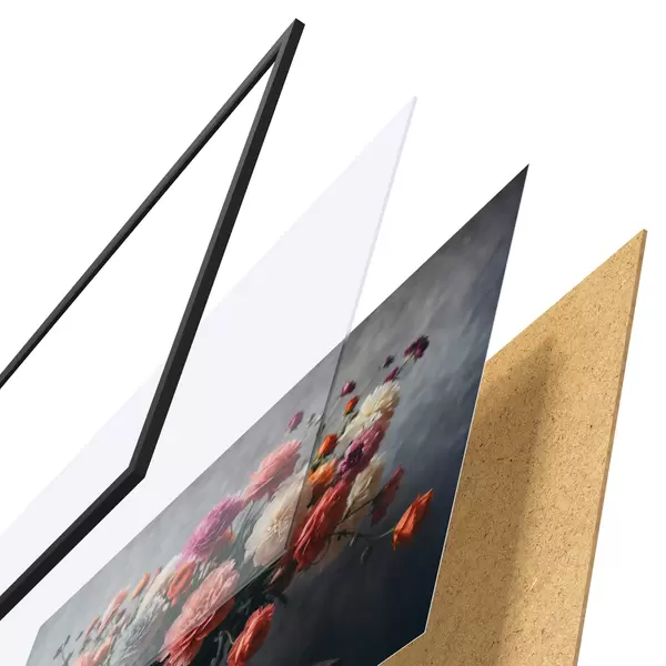 Il poster è composto da cornice, plexiglass, immagine stampata e supporto in truciolato. Il poster può essere immediatamente appeso alla parete grazie ai supporti sul retro.