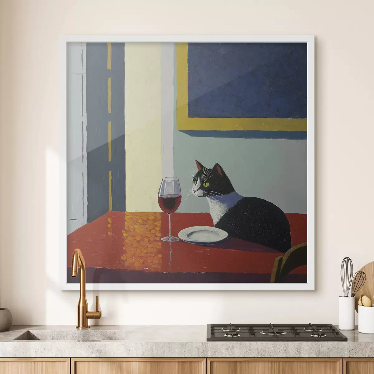 Poster Un gatto e un bicchiere di vino Nr f39913