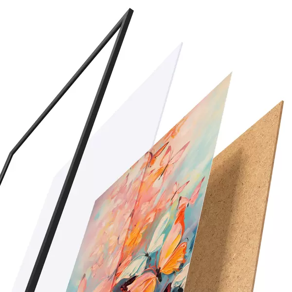 Il poster è composto da cornice, plexiglass, immagine stampata e supporto in truciolato. Il poster può essere immediatamente appeso alla parete grazie ai supporti sul retro.