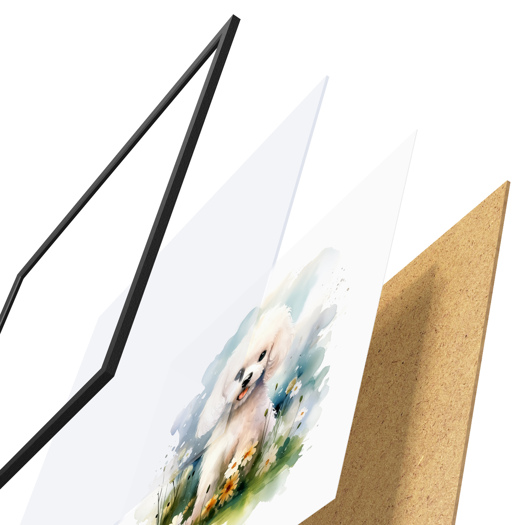 Poster Piccolo barboncino bianco seduto in un acquerello di fiori Nr f39928