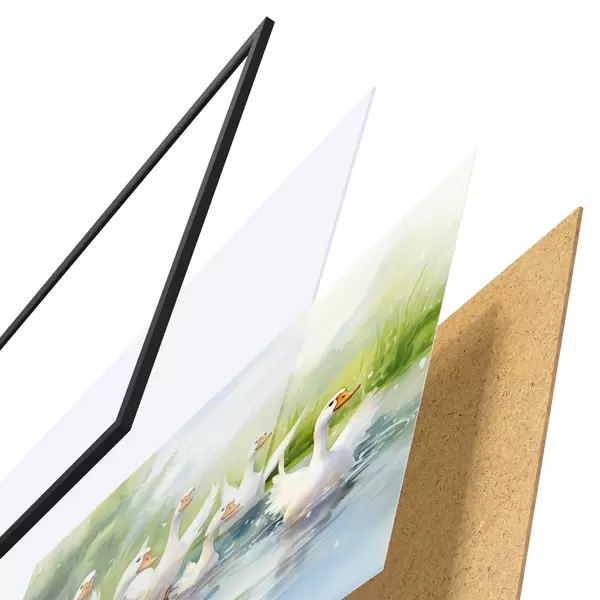 Il poster è composto da cornice, plexiglass, immagine stampata e supporto in truciolato. Il poster può essere immediatamente appeso alla parete grazie ai supporti sul retro.