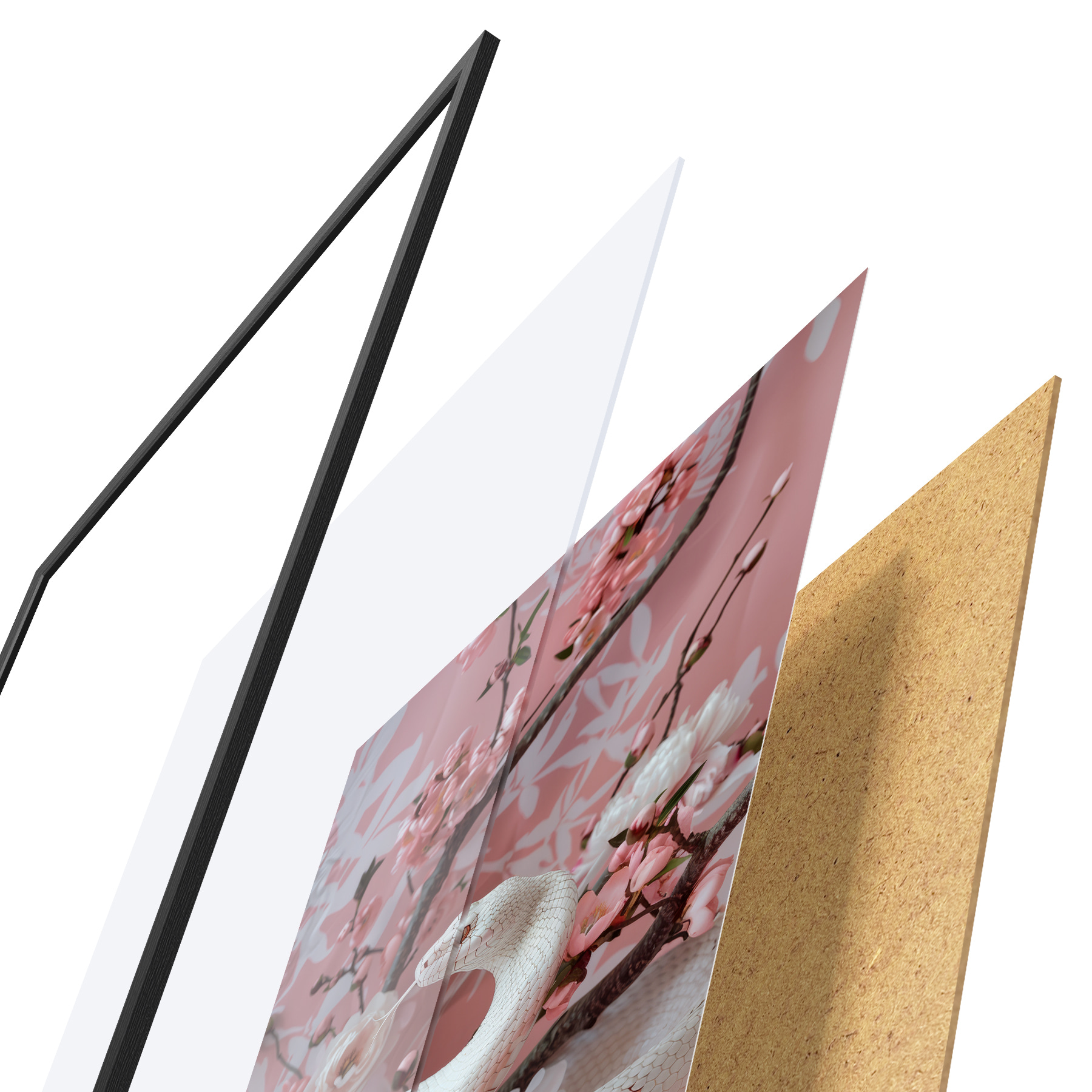 Il poster è composto da cornice, plexiglass, immagine stampata e supporto in truciolato. Il poster può essere immediatamente appeso alla parete grazie ai supporti sul retro.