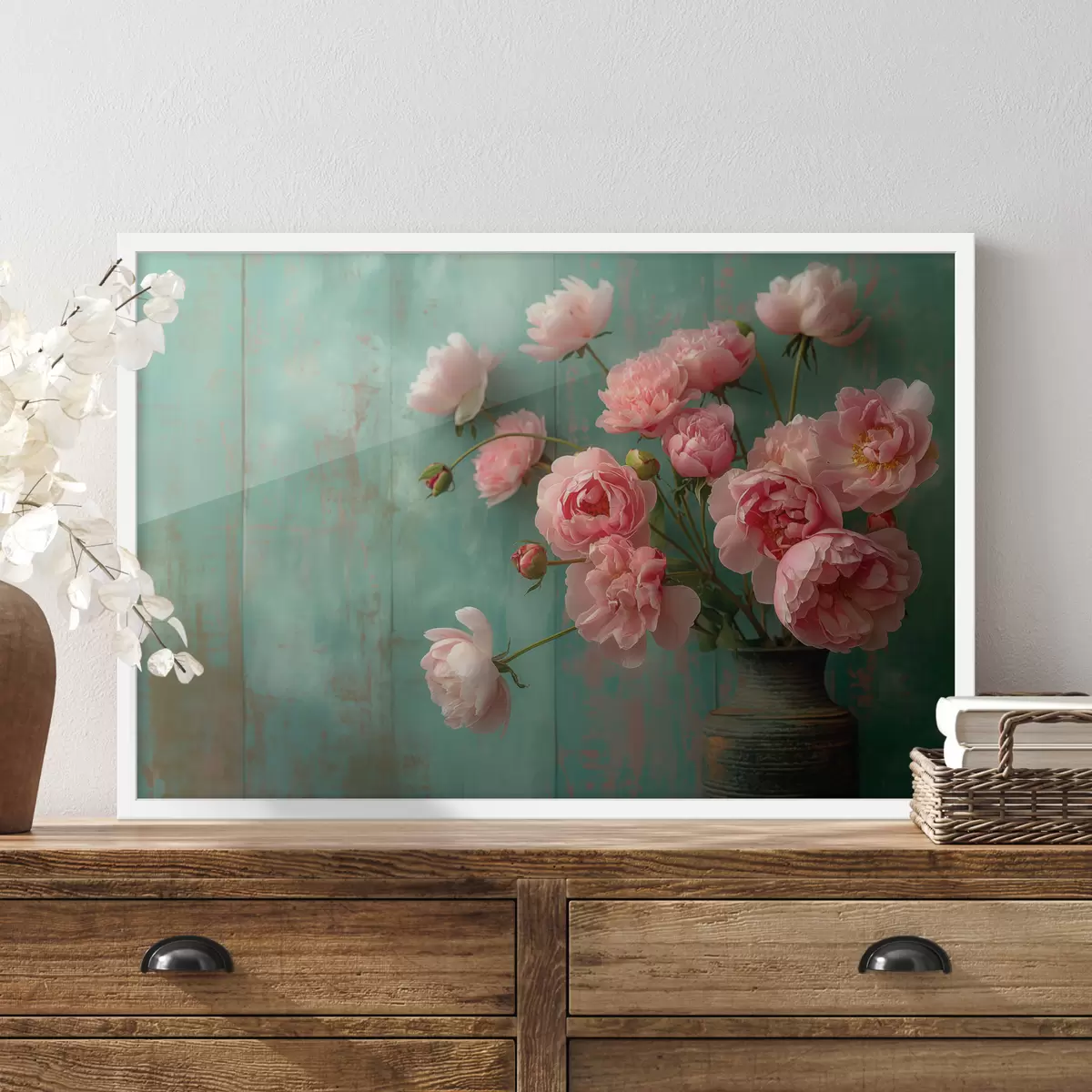 Poster Fiori rosa, legno, oggetti d'antiquariato Nr f39957