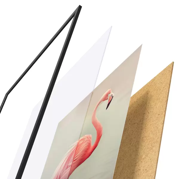 Il poster è composto da cornice, plexiglass, immagine stampata e supporto in truciolato. Il poster può essere immediatamente appeso alla parete grazie ai supporti sul retro.