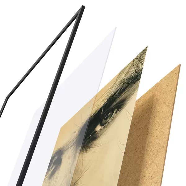 Il poster è composto da cornice, plexiglass, immagine stampata e supporto in truciolato. Il poster può essere immediatamente appeso alla parete grazie ai supporti sul retro.