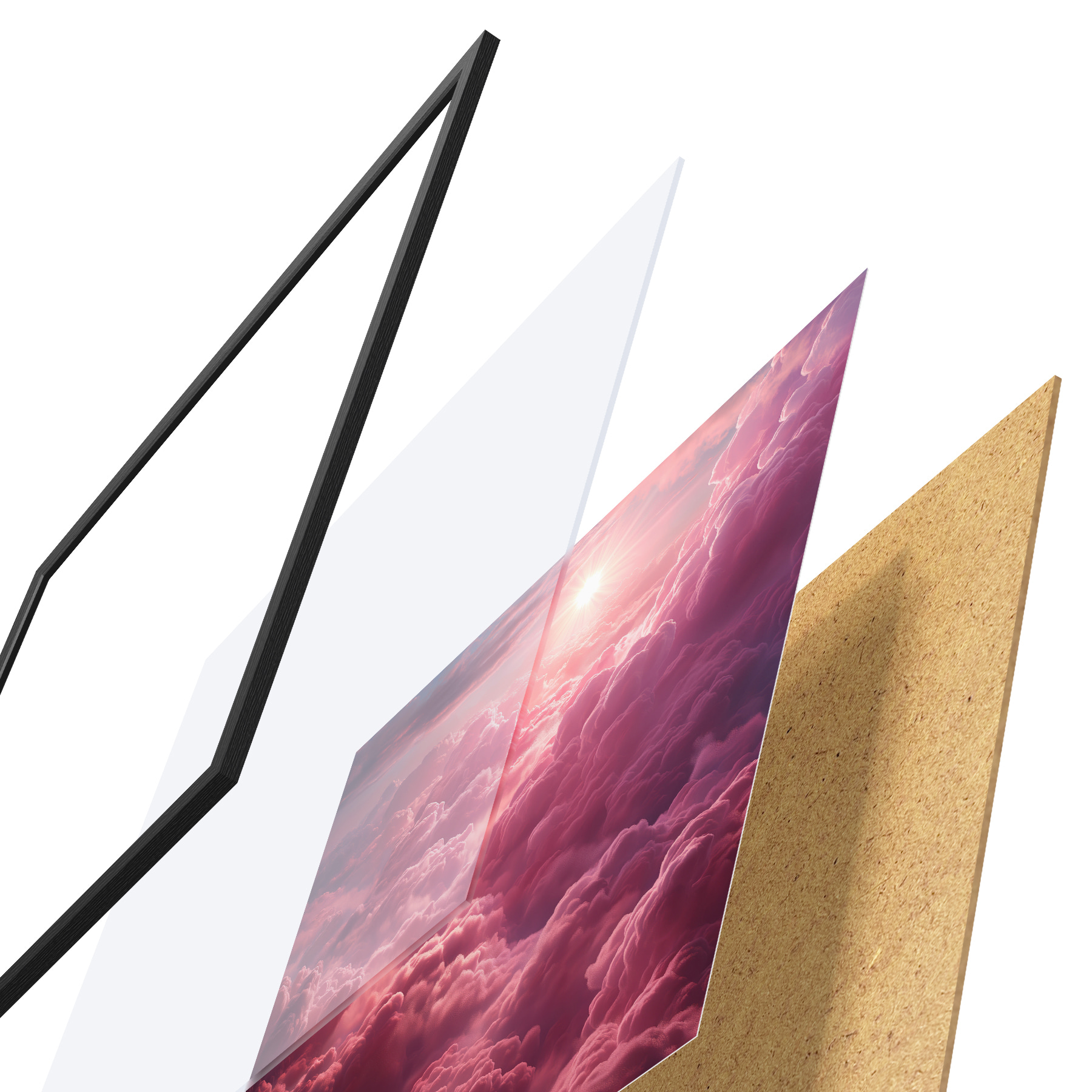 Il poster è composto da cornice, plexiglass, immagine stampata e supporto in truciolato. Il poster può essere immediatamente appeso alla parete grazie ai supporti sul retro.
