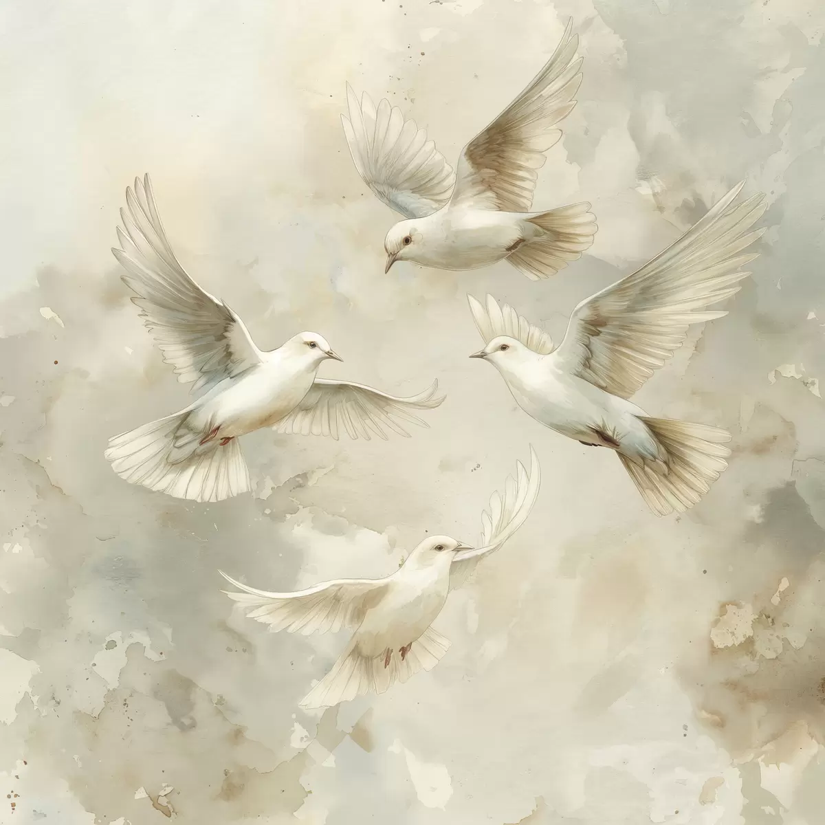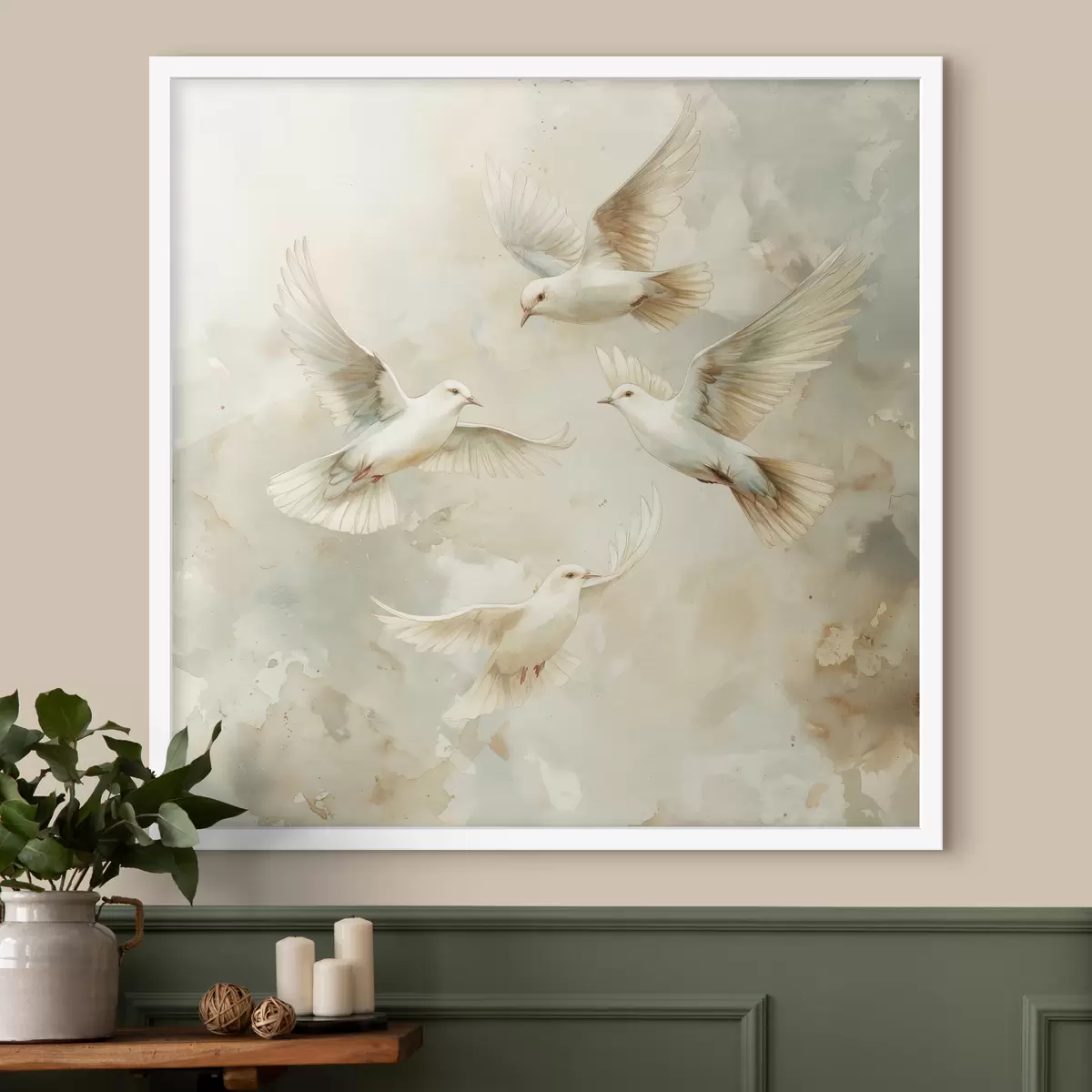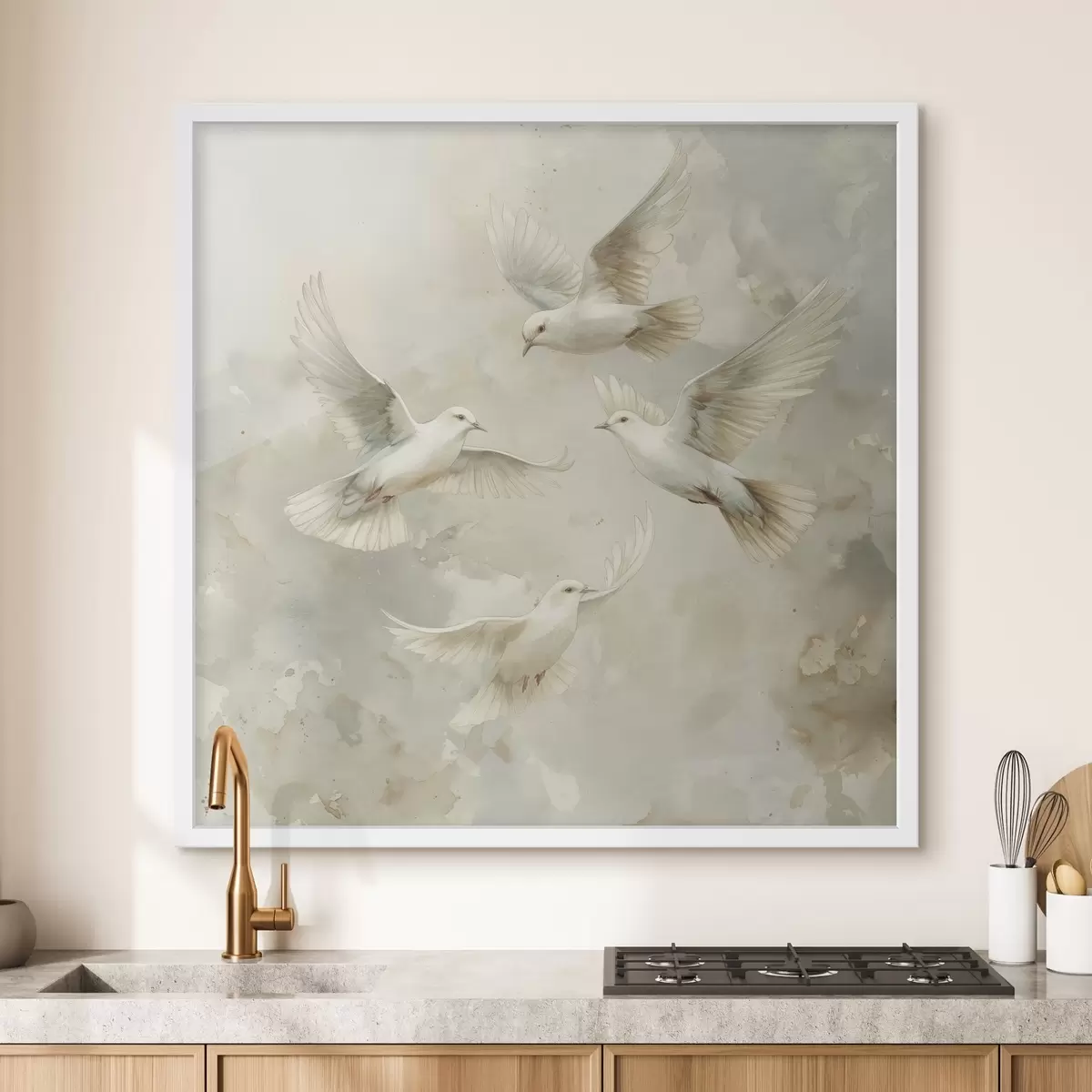 Poster Uccelli volanti ad acquerello, colori delicati beige e bianco, piccioni Nr f39976