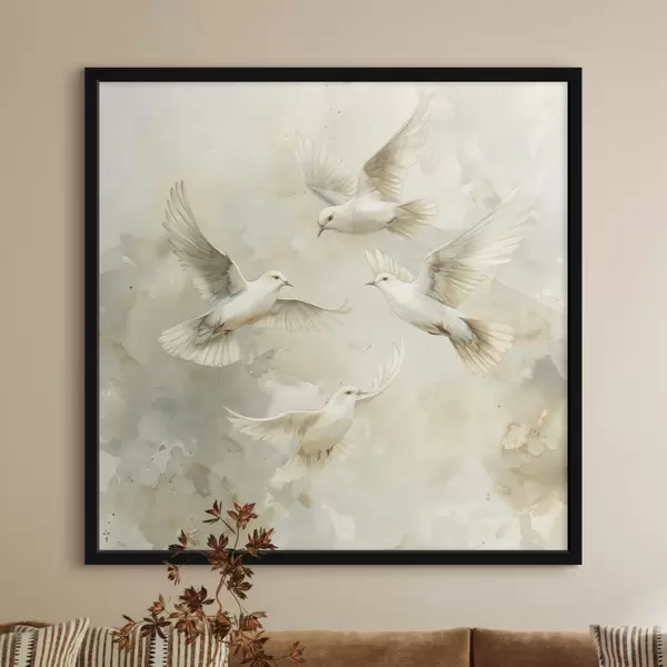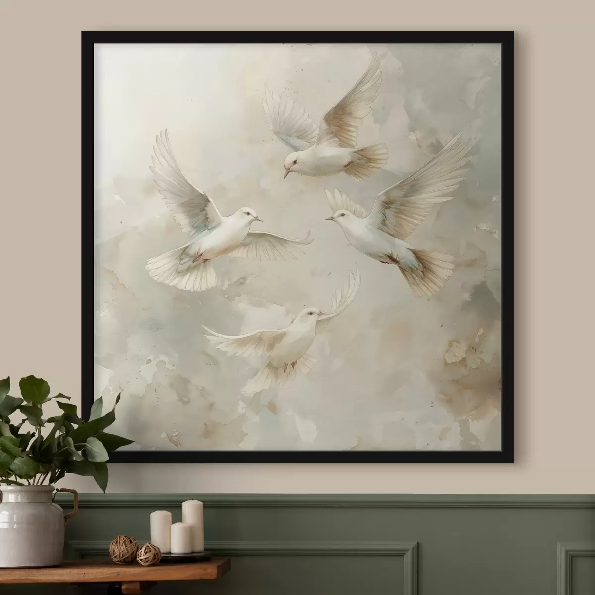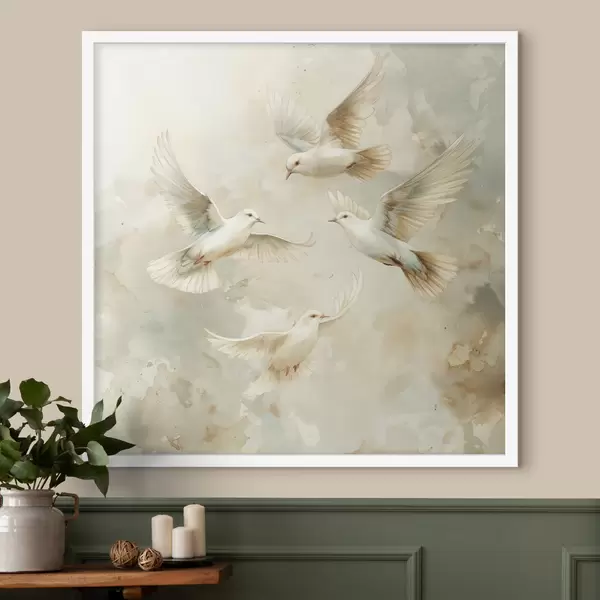Poster Uccelli volanti ad acquerello, colori delicati beige e bianco, piccioni f39976
