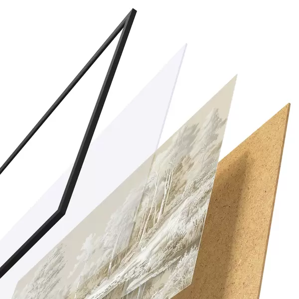 Il poster è composto da cornice, plexiglass, immagine stampata e supporto in truciolato. Il poster può essere immediatamente appeso alla parete grazie ai supporti sul retro.