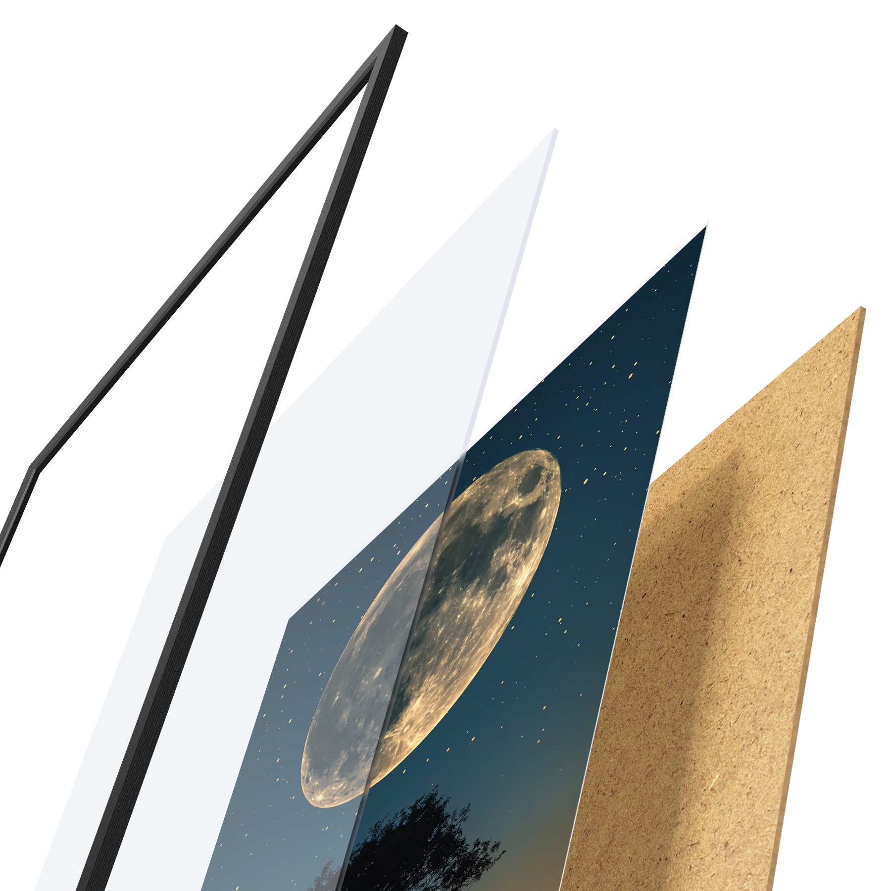 Il poster è composto da cornice, plexiglass, immagine stampata e supporto in truciolato. Il poster può essere immediatamente appeso alla parete grazie ai supporti sul retro.