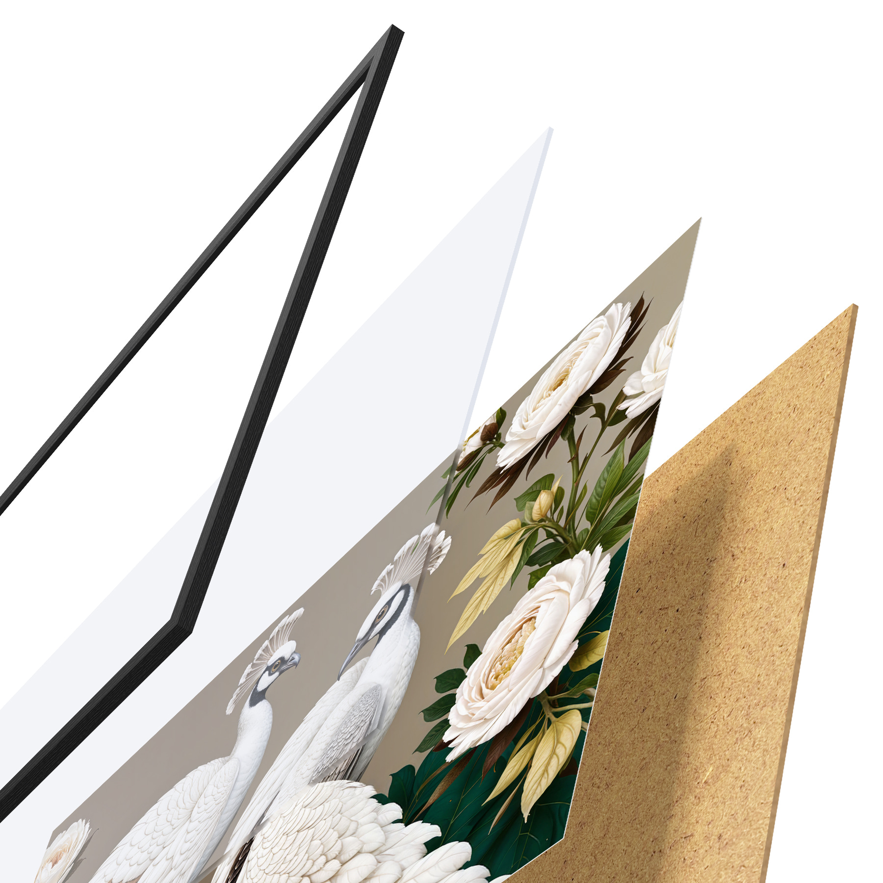 Il poster è composto da cornice, plexiglass, immagine stampata e supporto in truciolato. Il poster può essere immediatamente appeso alla parete grazie ai supporti sul retro.