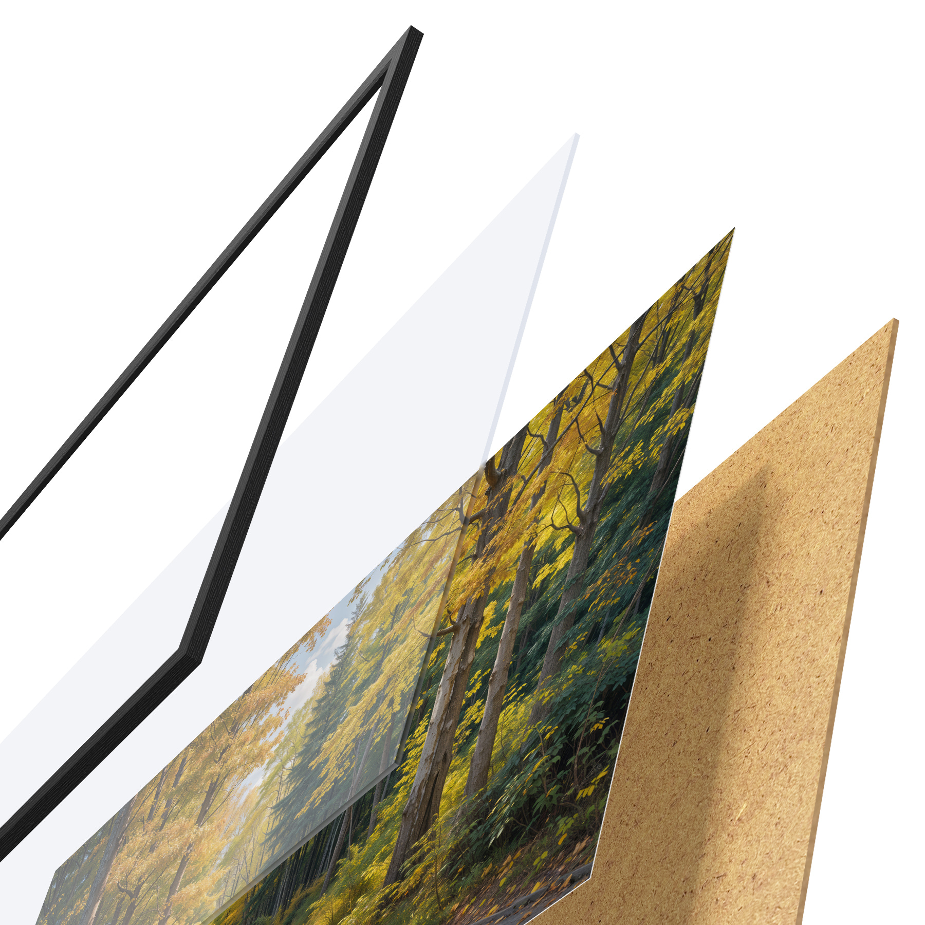 Il poster è composto da cornice, plexiglass, immagine stampata e supporto in truciolato. Il poster può essere immediatamente appeso alla parete grazie ai supporti sul retro.