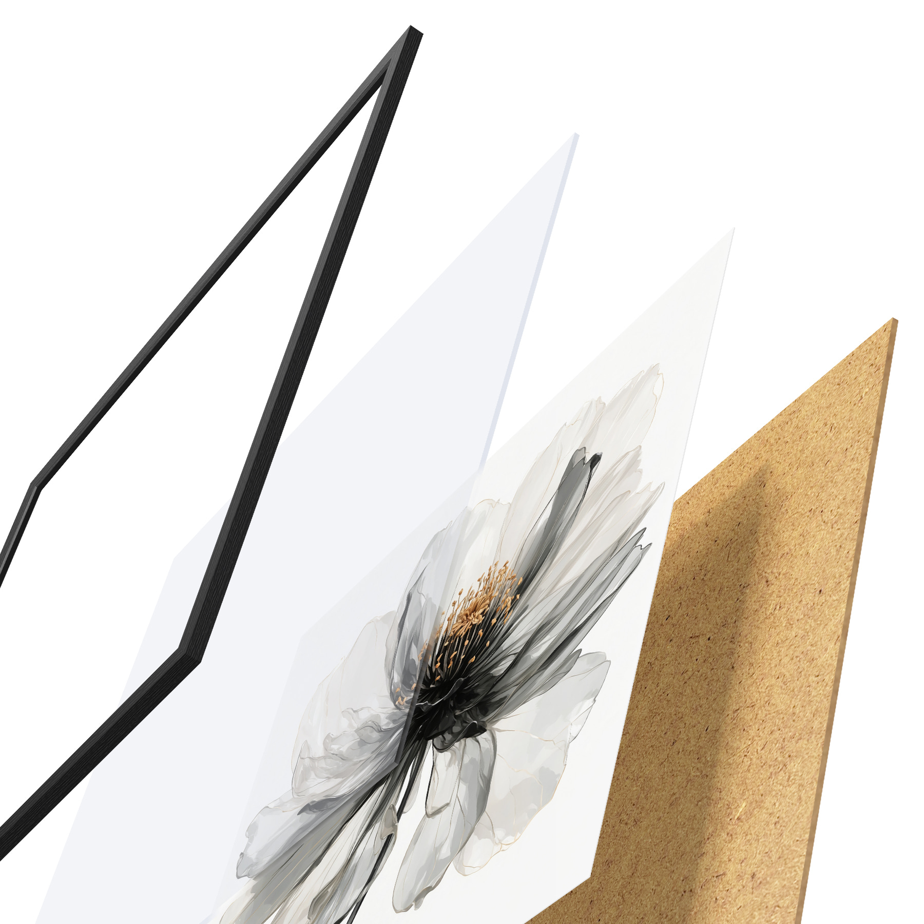 Poster Fiore nero trasparente su sfondo bianco Nr f40066