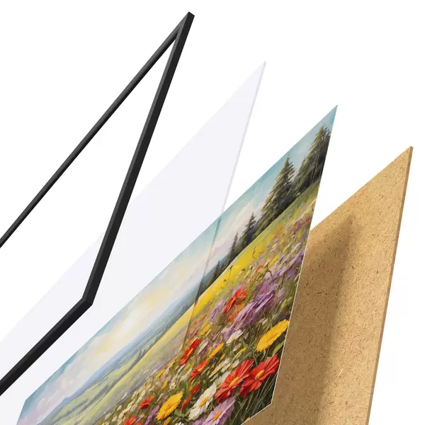 Il poster è composto da cornice, plexiglass, immagine stampata e supporto in truciolato. Il poster può essere immediatamente appeso alla parete grazie ai supporti sul retro.