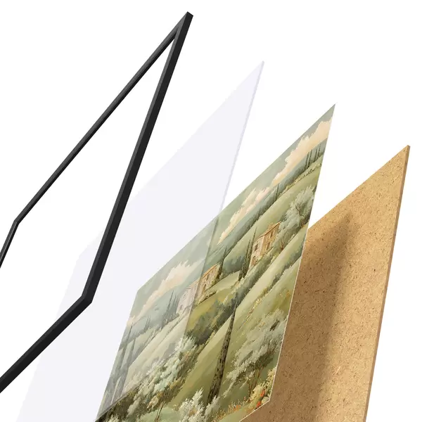 Il poster è composto da cornice, plexiglass, immagine stampata e supporto in truciolato. Il poster può essere immediatamente appeso alla parete grazie ai supporti sul retro.