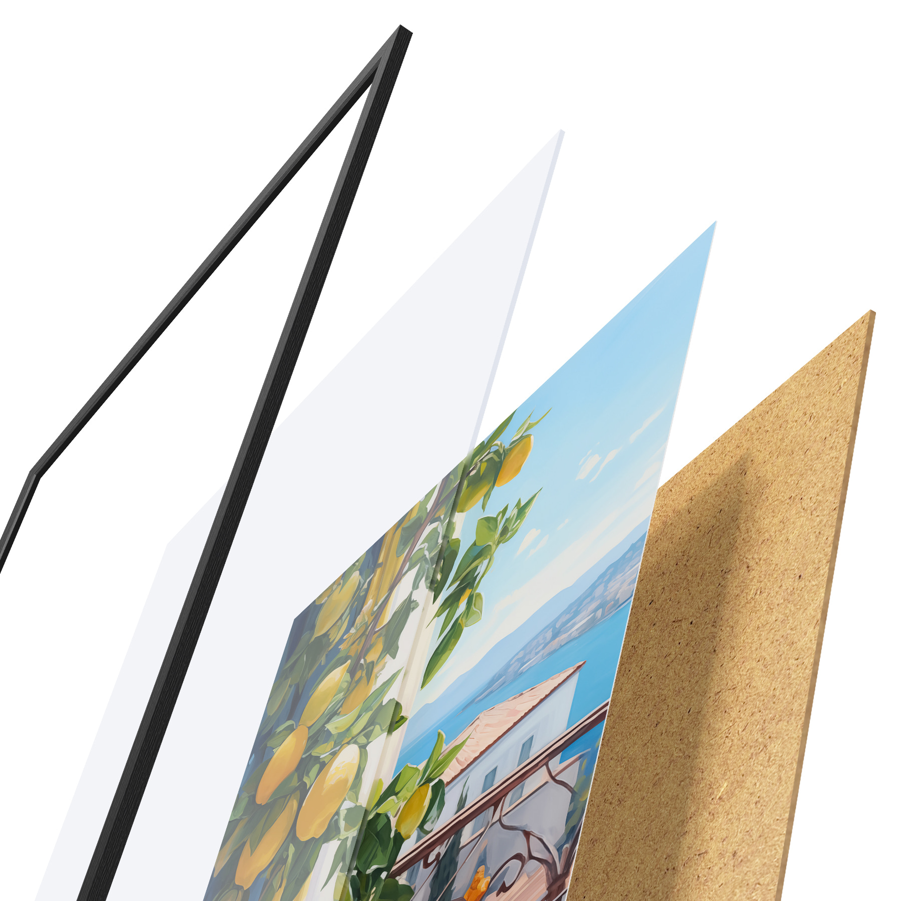 Il poster è composto da cornice, plexiglass, immagine stampata e supporto in truciolato. Il poster può essere immediatamente appeso alla parete grazie ai supporti sul retro.