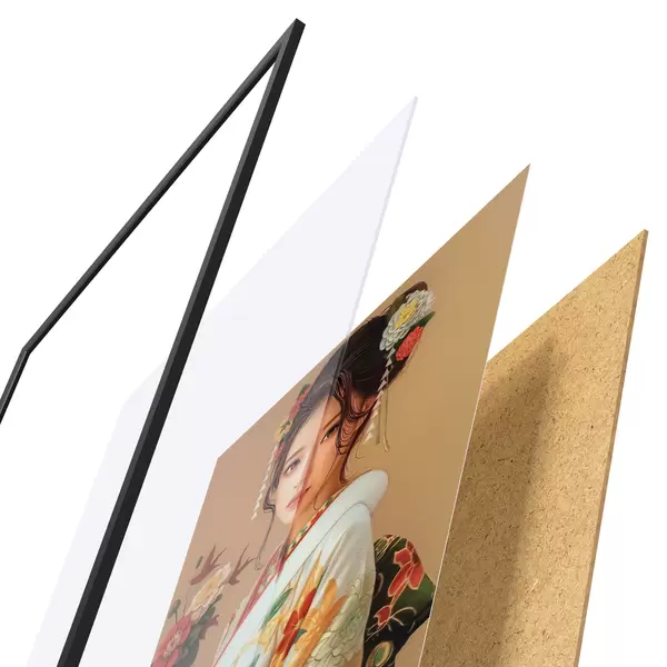 Il poster è composto da cornice, plexiglass, immagine stampata e supporto in truciolato. Il poster può essere immediatamente appeso alla parete grazie ai supporti sul retro.