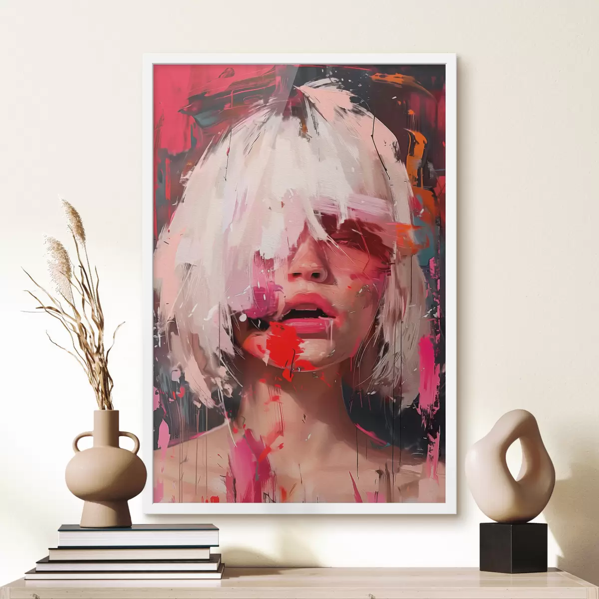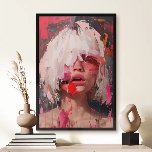 Poster Ragazza bionda con caschetto quadrato e vernice colorata Nr f40110