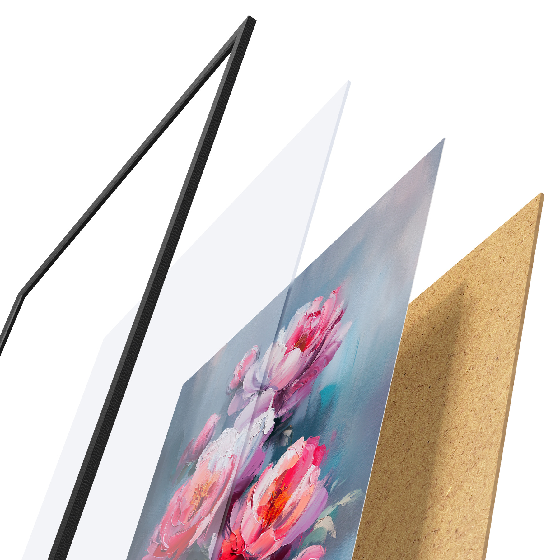 Il poster è composto da cornice, plexiglass, immagine stampata e supporto in truciolato. Il poster può essere immediatamente appeso alla parete grazie ai supporti sul retro.