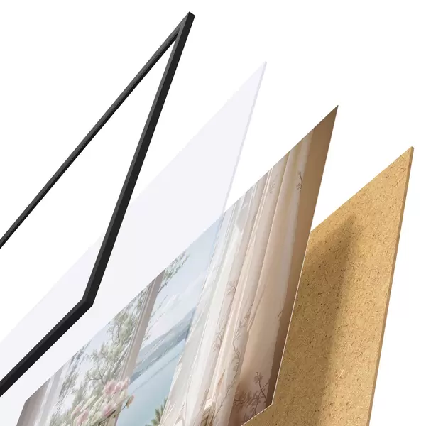 Il poster è composto da cornice, plexiglass, immagine stampata e supporto in truciolato. Il poster può essere immediatamente appeso alla parete grazie ai supporti sul retro.