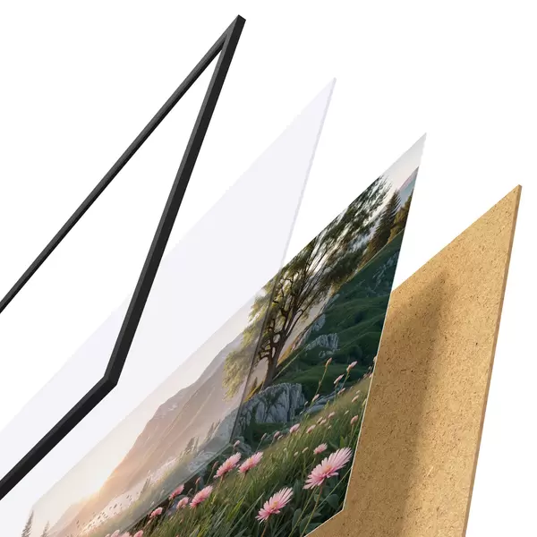 Il poster è composto da cornice, plexiglass, immagine stampata e supporto in truciolato. Il poster può essere immediatamente appeso alla parete grazie ai supporti sul retro.