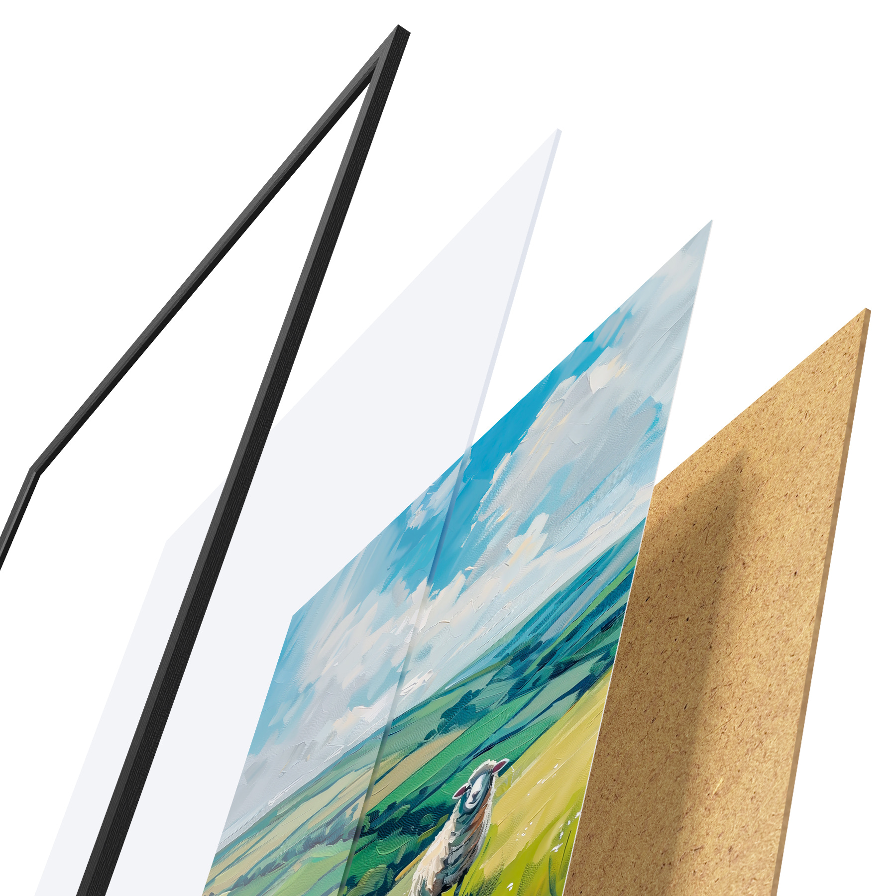 Il poster è composto da cornice, plexiglass, immagine stampata e supporto in truciolato. Il poster può essere immediatamente appeso alla parete grazie ai supporti sul retro.