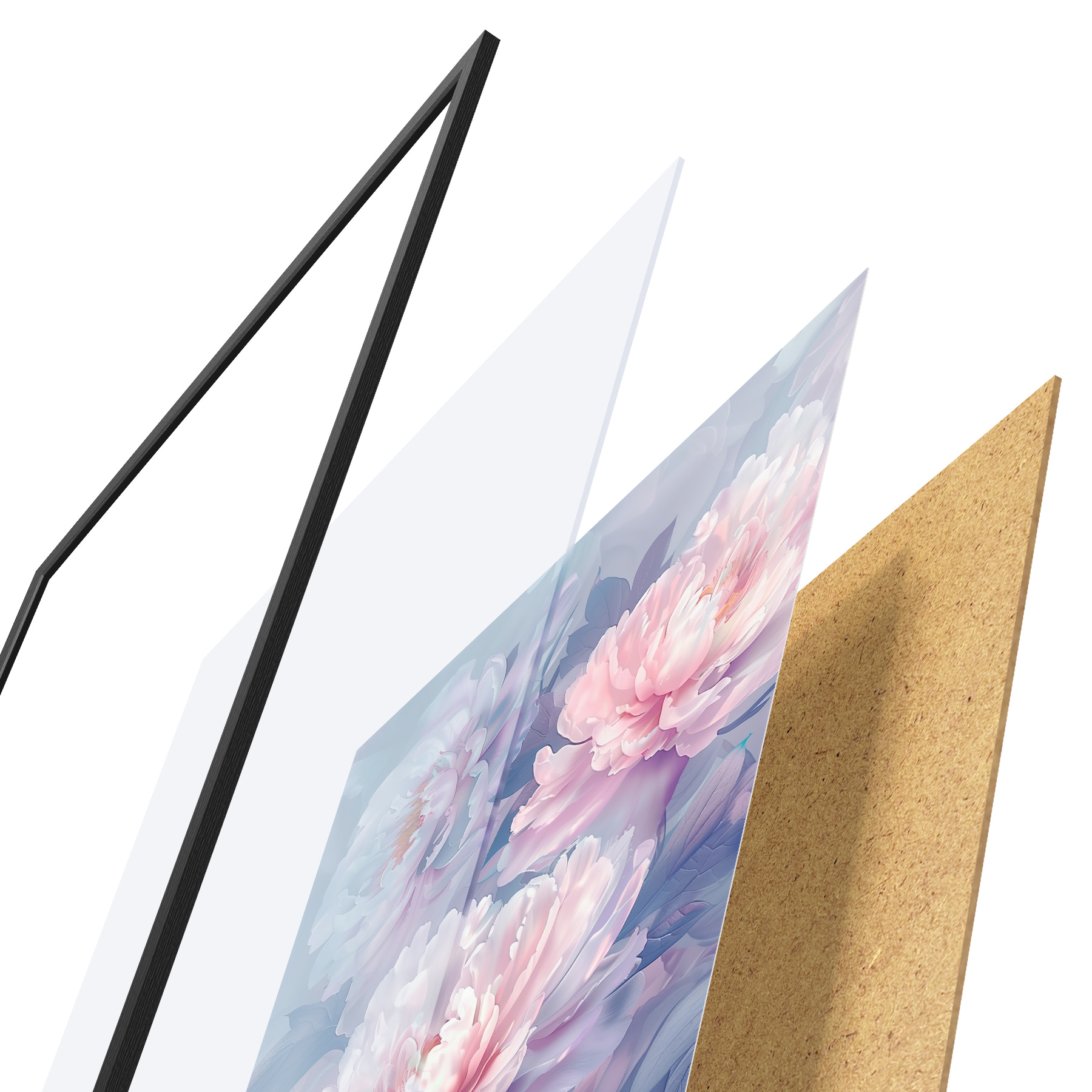 Il poster è composto da cornice, plexiglass, immagine stampata e supporto in truciolato. Il poster può essere immediatamente appeso alla parete grazie ai supporti sul retro.