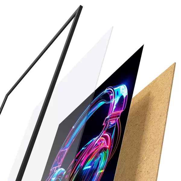 Il poster è composto da cornice, plexiglass, immagine stampata e supporto in truciolato. Il poster può essere immediatamente appeso alla parete grazie ai supporti sul retro.