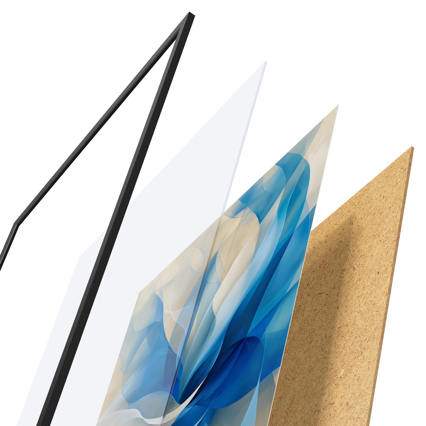 Il poster è composto da cornice, plexiglass, immagine stampata e supporto in truciolato. Il poster può essere immediatamente appeso alla parete grazie ai supporti sul retro.