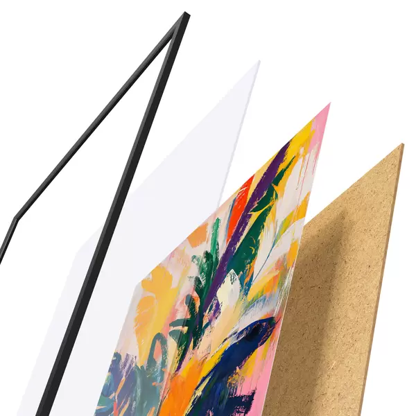 Il poster è composto da cornice, plexiglass, immagine stampata e supporto in truciolato. Il poster può essere immediatamente appeso alla parete grazie ai supporti sul retro.