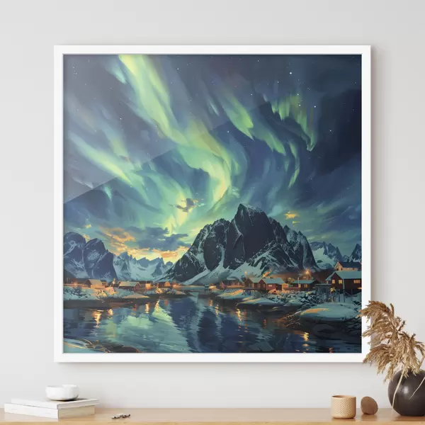 Poster Isole Lofoten, luci della notte, villaggio invernale Nr f40299