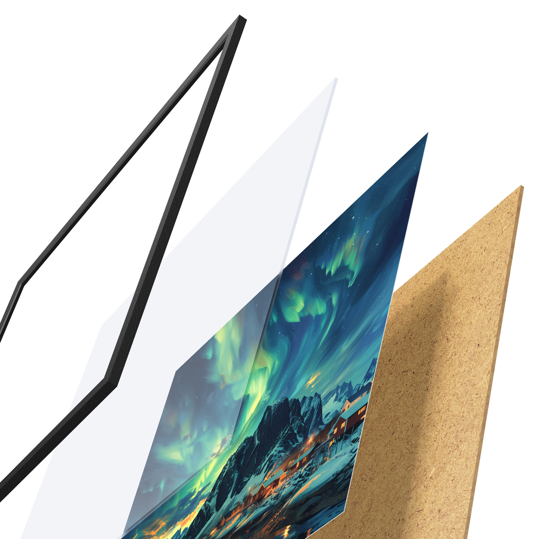 Il poster è composto da cornice, plexiglass, immagine stampata e supporto in truciolato. Il poster può essere immediatamente appeso alla parete grazie ai supporti sul retro.