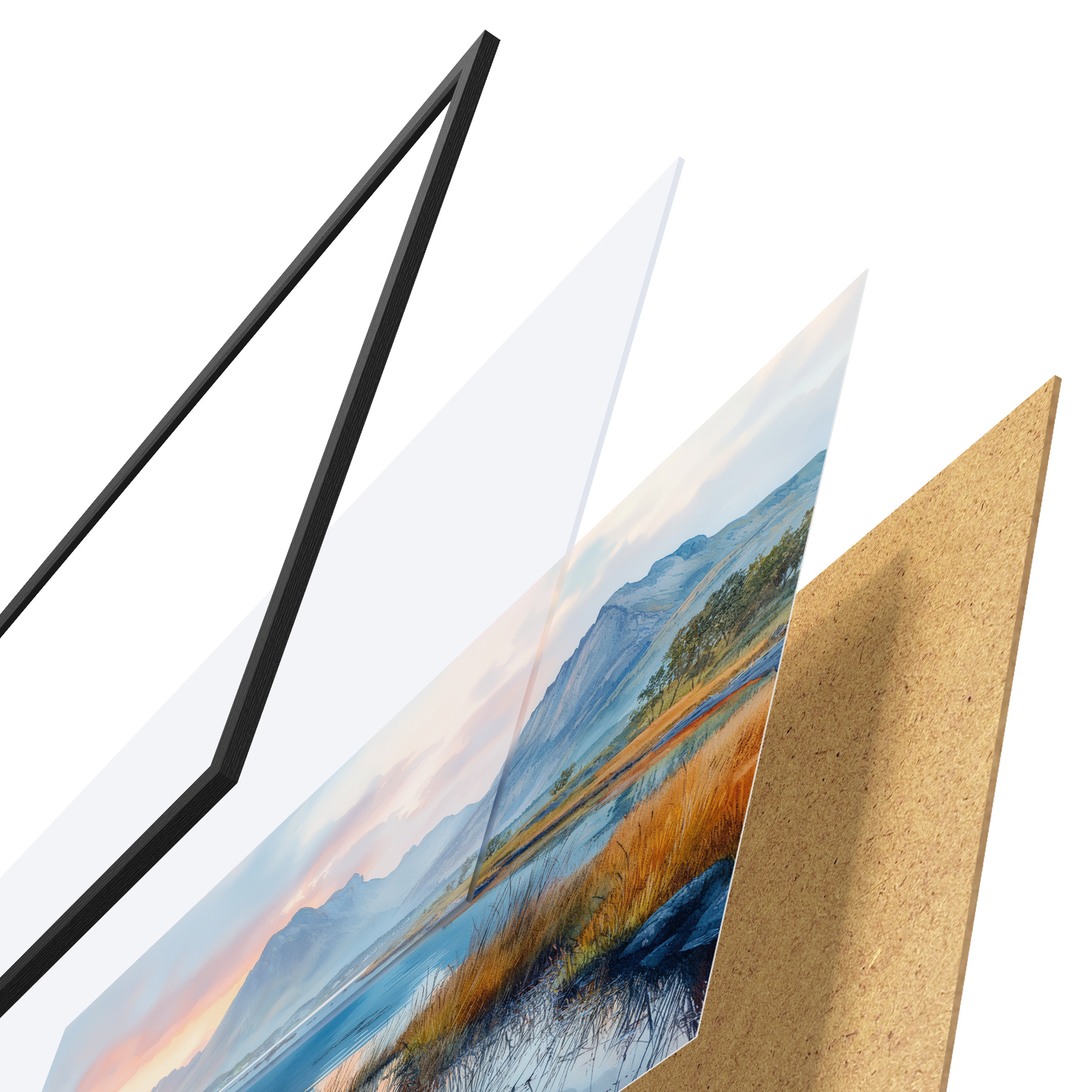 Il poster è composto da cornice, plexiglass, immagine stampata e supporto in truciolato. Il poster può essere immediatamente appeso alla parete grazie ai supporti sul retro.